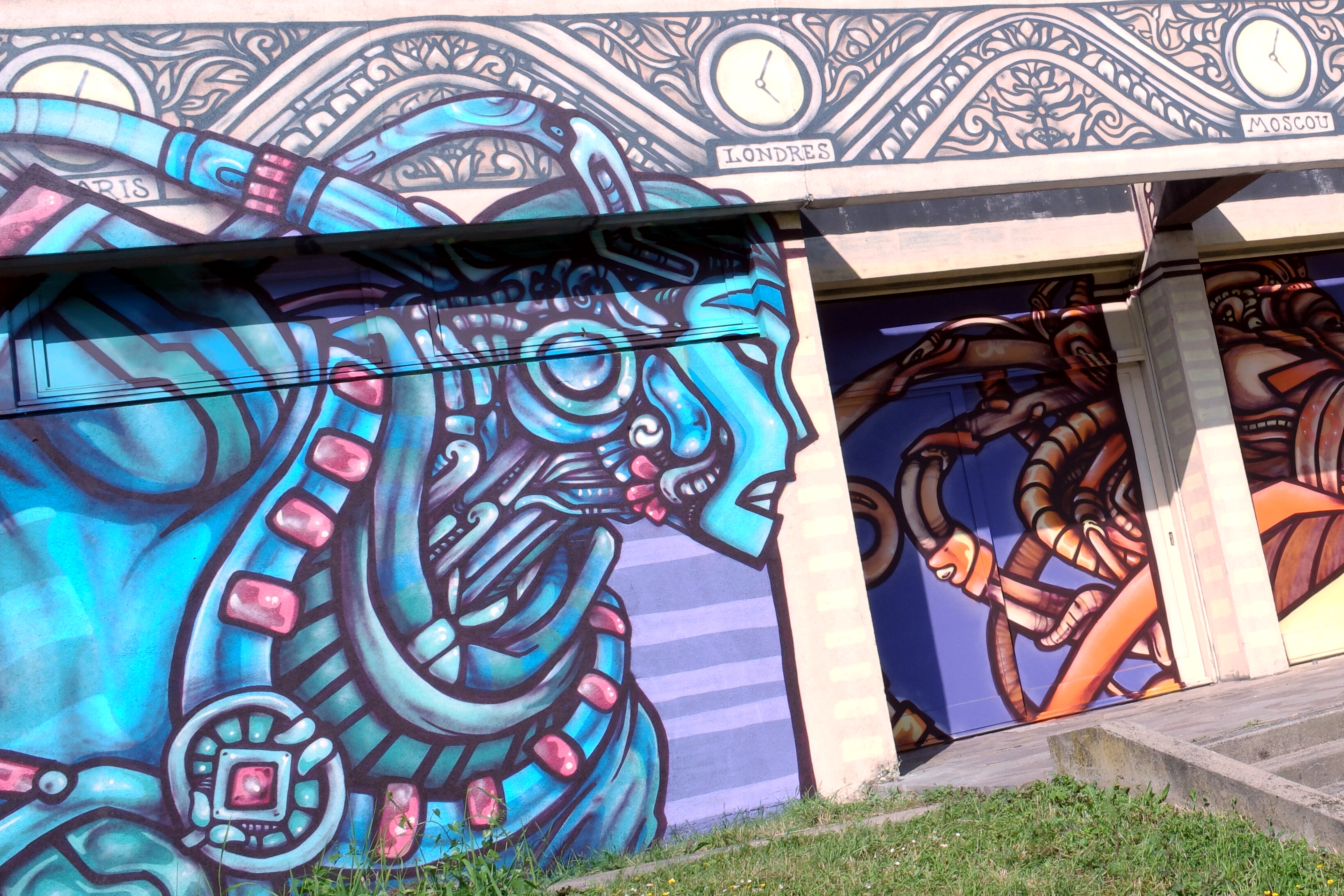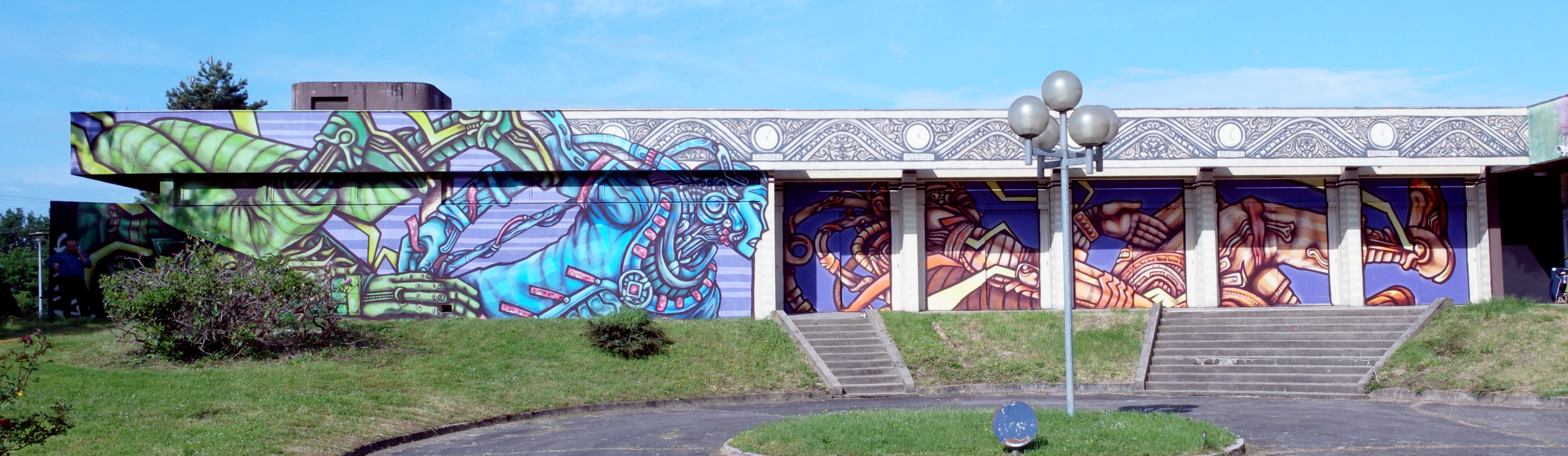 Cohue dans la Gare Réalisation de 30 mètres de long par 7 mètres de haut à Street Art City, espace muséographique dédié au street-art dans l’Allier. Peinture spray – 2016 Similaire