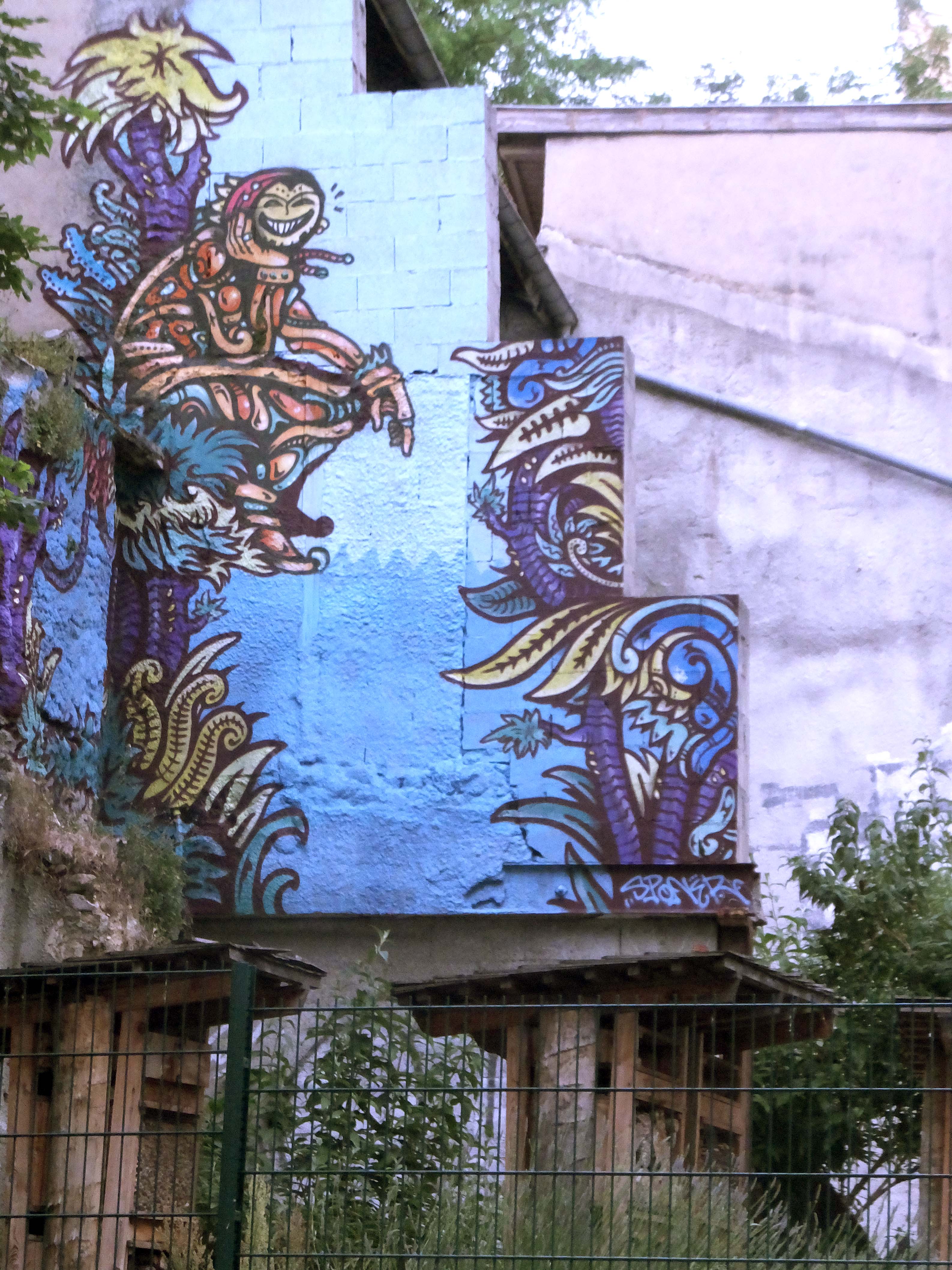 La ruche Fresque peinte sur la façade d’un jardin collectif de quartier à Lyon. Peinture acrylique, brosses et peinture spray – 2015 Similaire