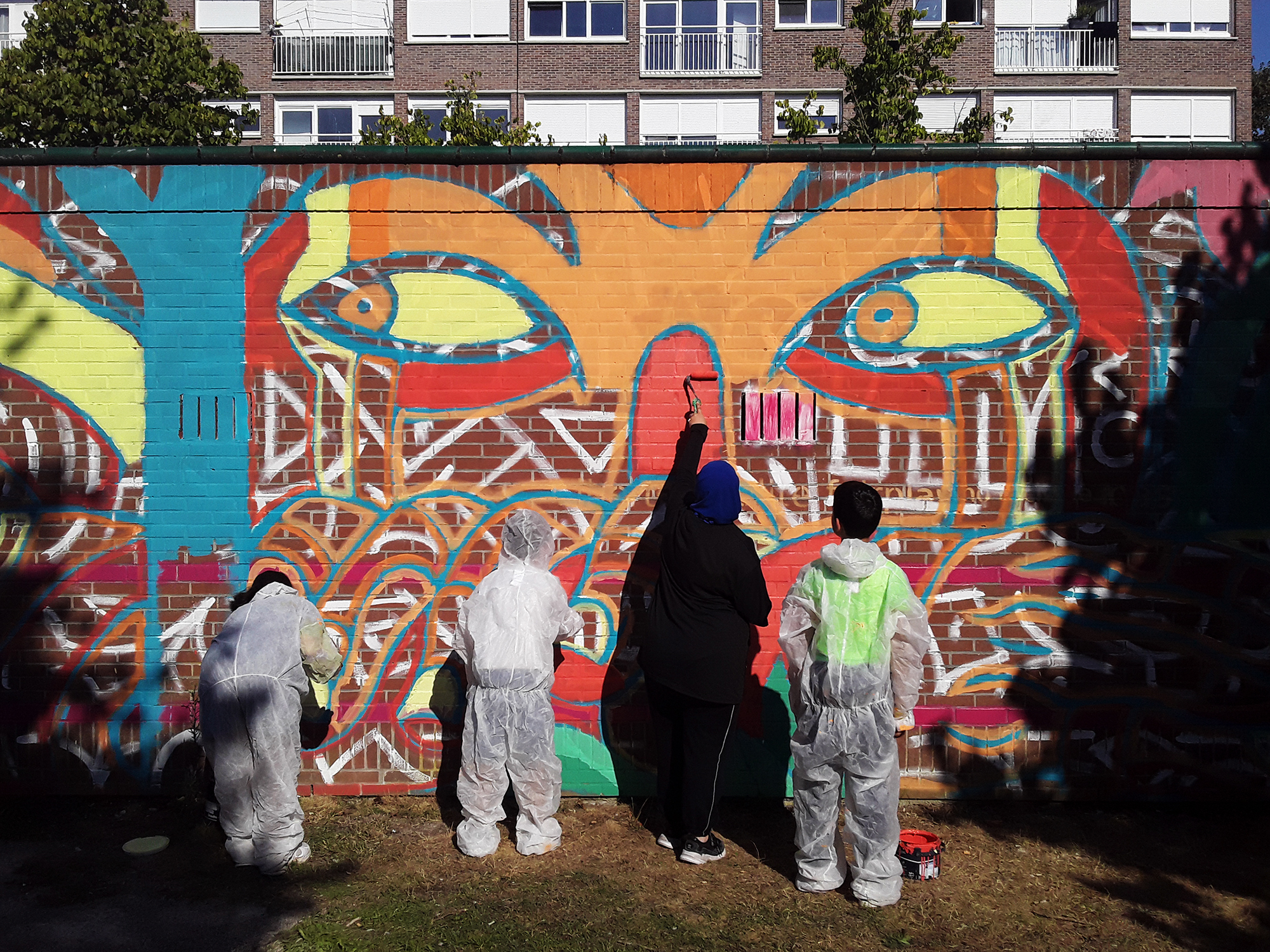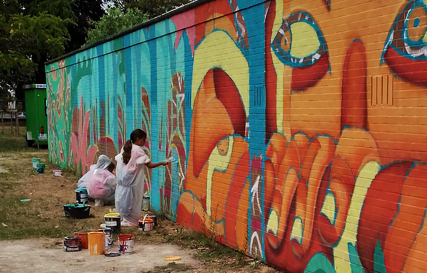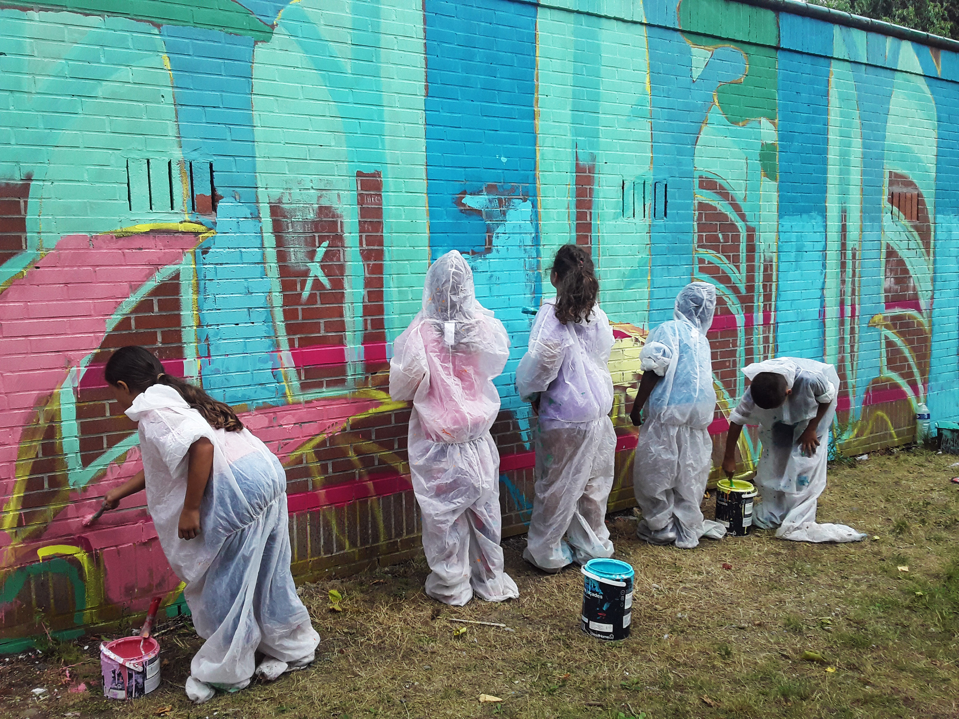 Les couleurs ont été posées lors de plusieurs ateliers participatifs avec les jeunes du centre social Boilly.