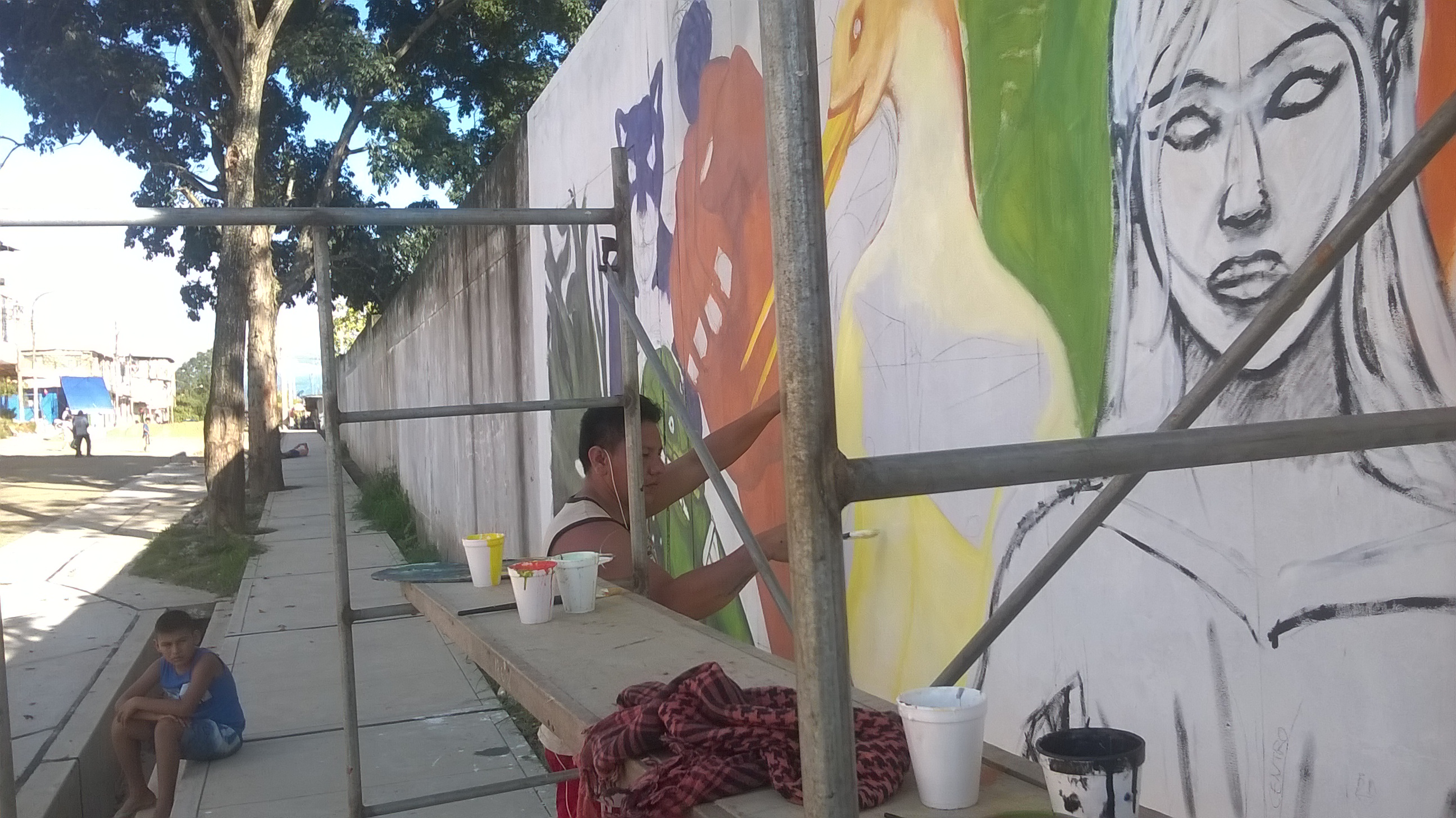 Cette fresque porte le thème de la résistance de la cosmovision amazonienne, elle a été réalisé dans un autre style pour l’occasion avec le peintre Péruvien Nelvis Paredes.