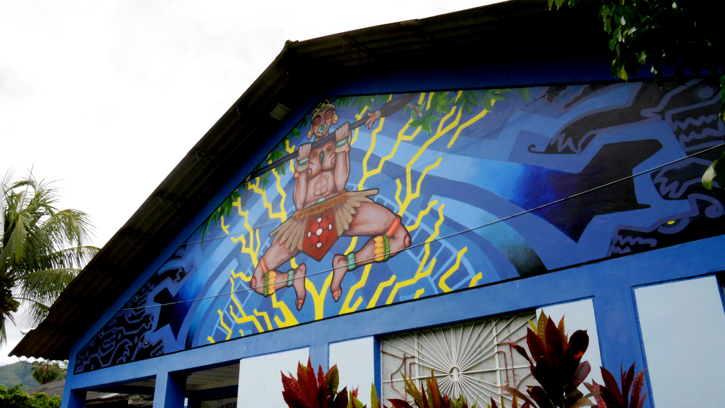 Mur peint sur la façade du musée archéologique de Jaen au nord du Pérou.