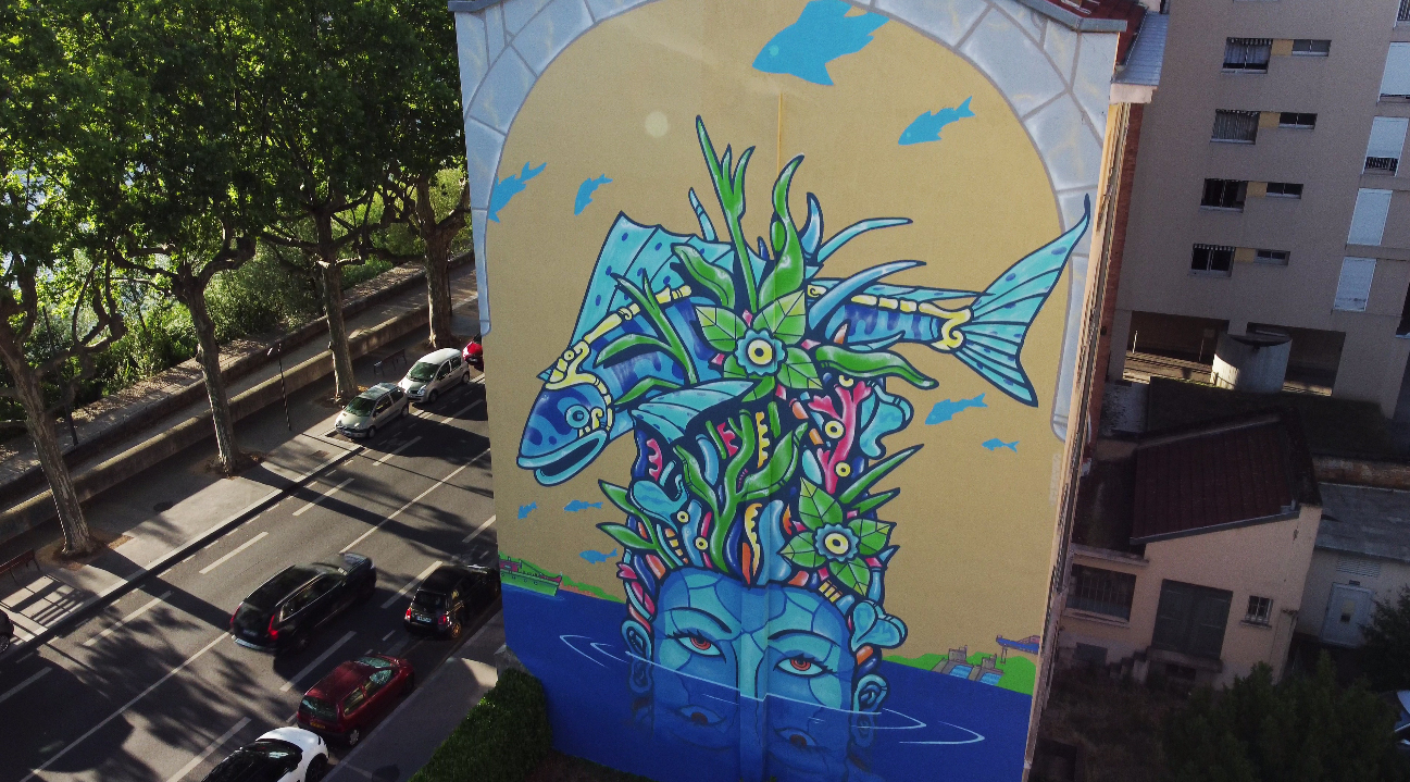 Réalisation de 20 mètres de hauteur à Lyon sur le thème de l’eau.
