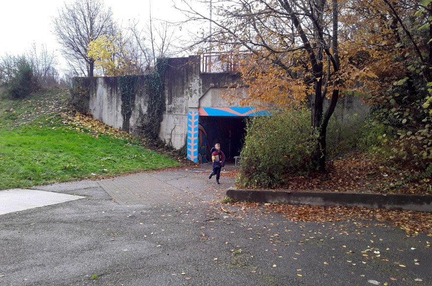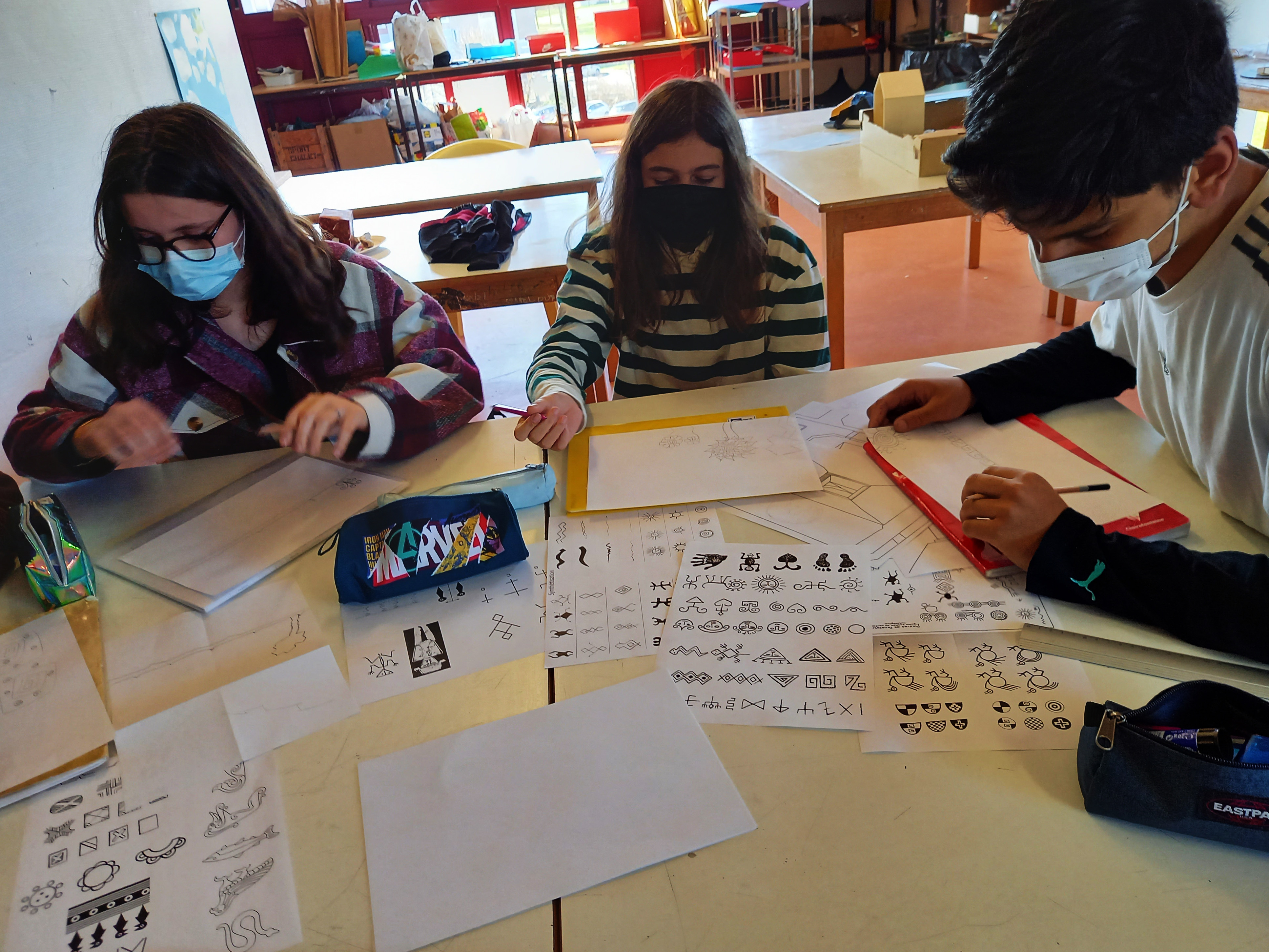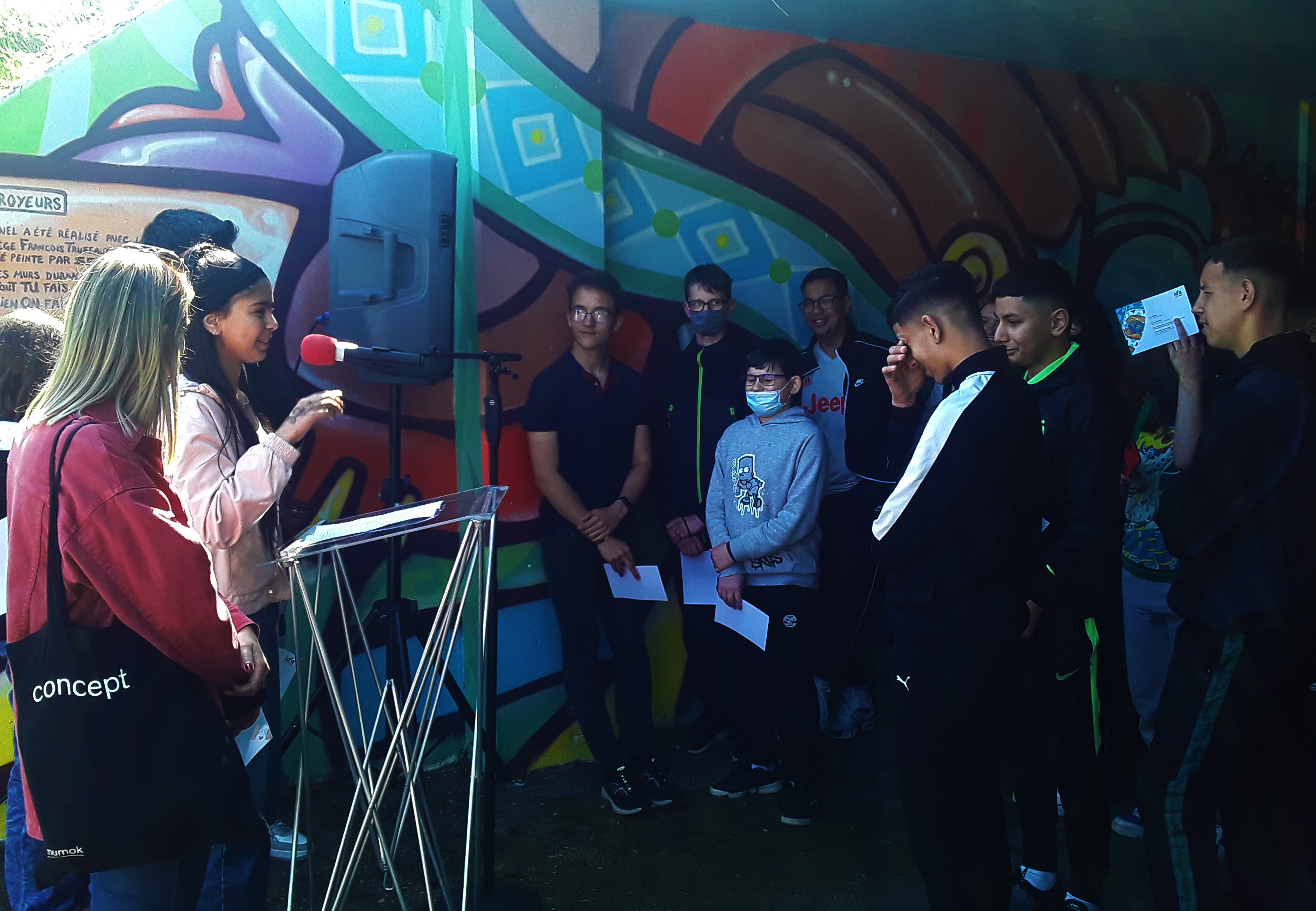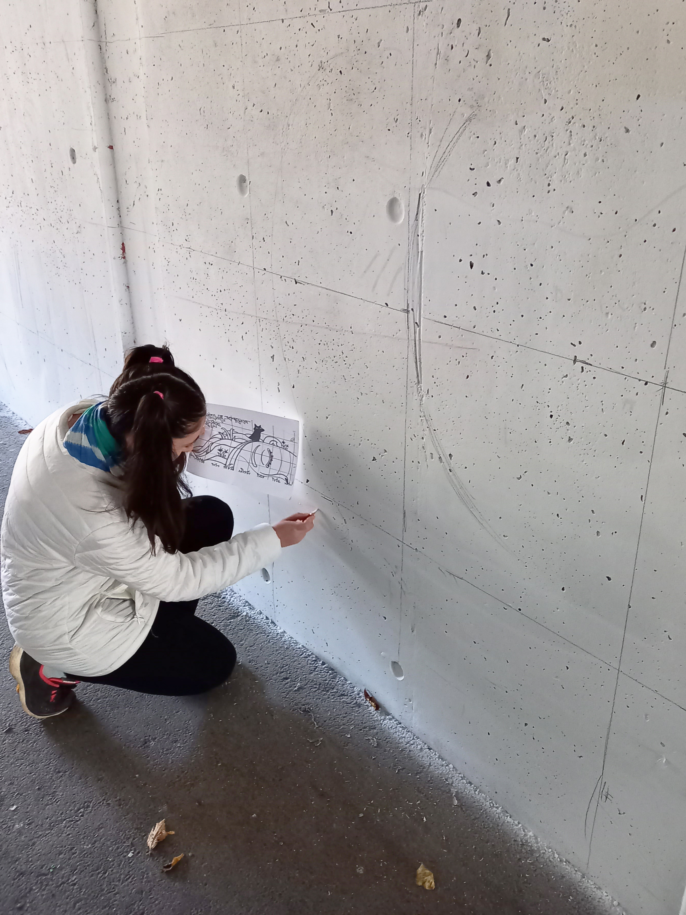 La fresque du second tunnel à été pensée et dessinée avec une classe de 3ème lors d’interventions durant les classes d’art plastique.